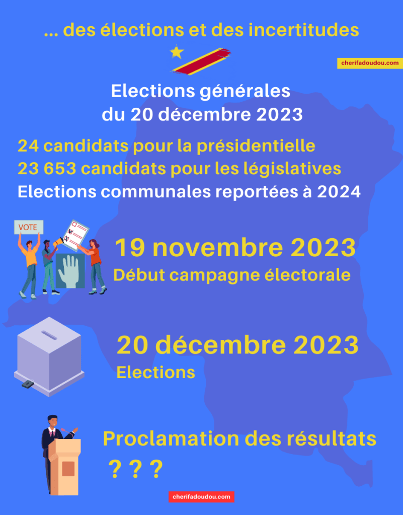 43 millions d’électeurs congolais sont appelés aux urnes dans les cadre des élections générales (présidentielle et législatives) qui auront lieu le 20 décembre 2023. Ces consultations se dérouleront sur fond d’enjeux (bien évidement) politiques mais aussi sociaux et sécuritaires. A 15 jours du début de la campagne électorale, voici un tour d’horizon.